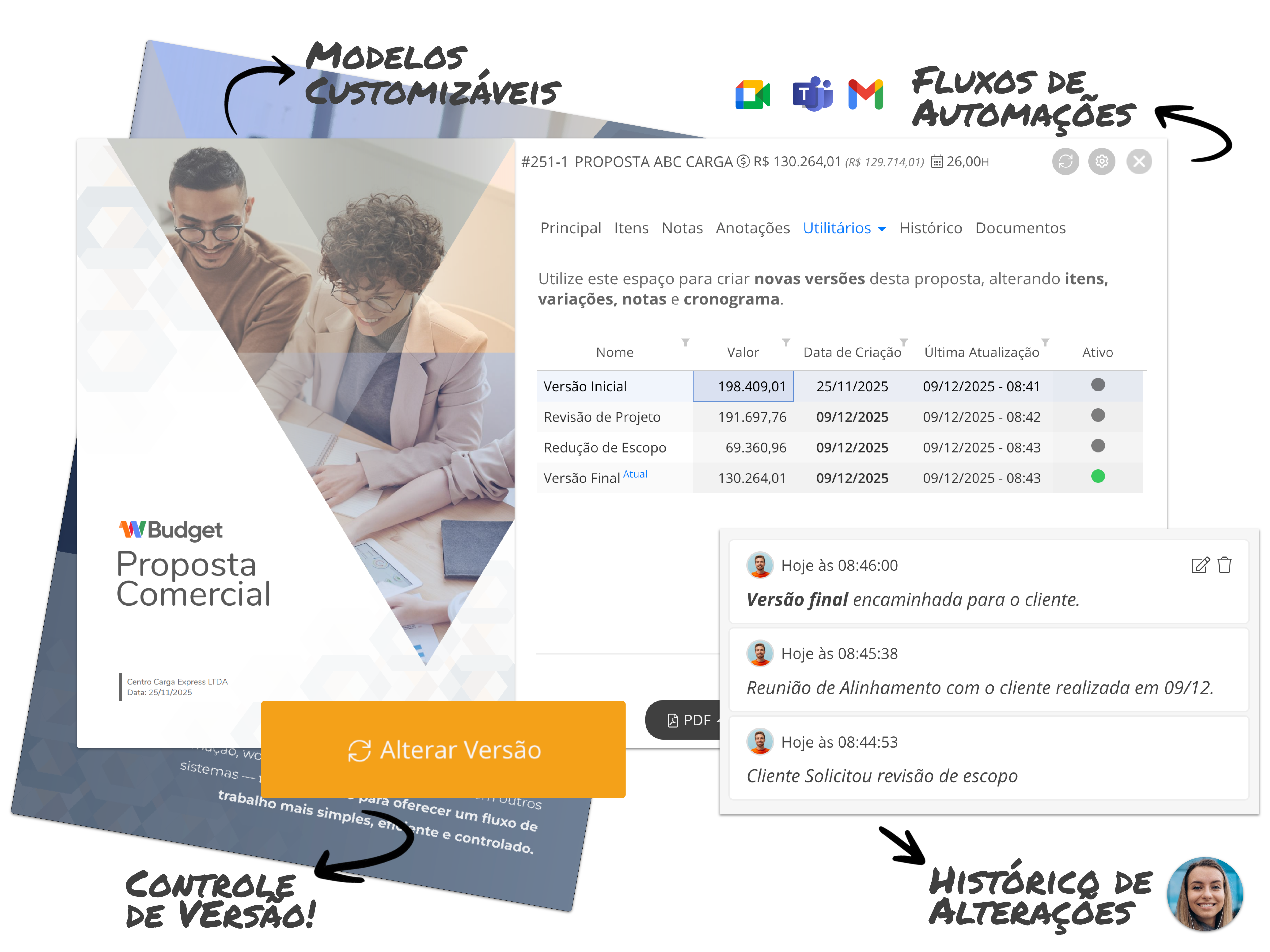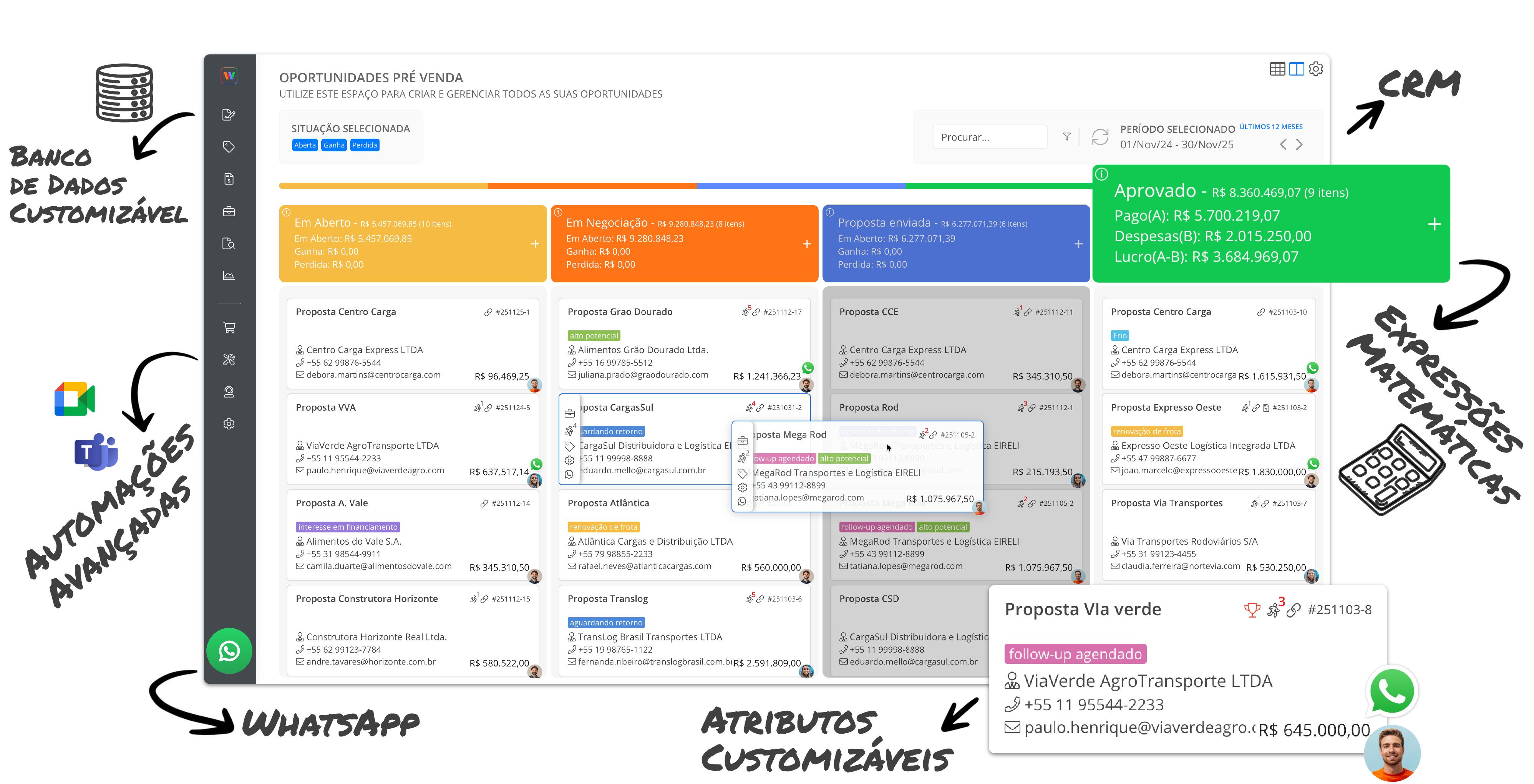 Propostas comerciais do WBudget viram contratos assinados no WPages automaticamente. A ZapSign se integra via API/Zapier, mas sem ecossistema nativo de CRM.